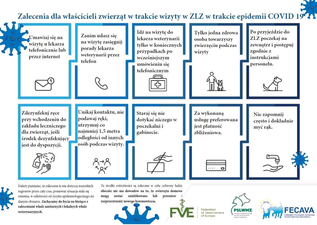 Obecna sytuacja wymaga szczególnego trybu postępowania również w prowadzonych przez Państwa zakładach leczniczych dla zwierząt.